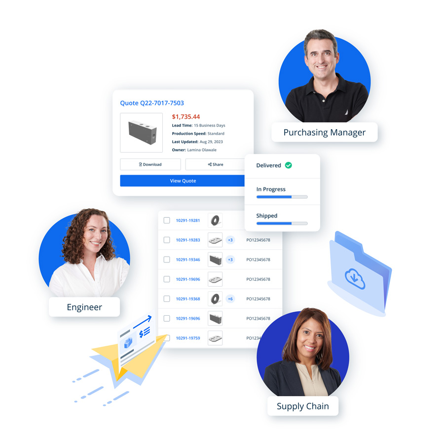 Teamspace is excellent for anyone who desires a collaborative environment where project details can easily be accessed and shared among others. Project managers, procurement professionals, buyers, engineers, product designers, supply chain professionals, and other project stakeholders can benefit from joining an Xometry Teamspace. Now, engineers can easily share quotes, and buyers can seamlessly access them to place orders.